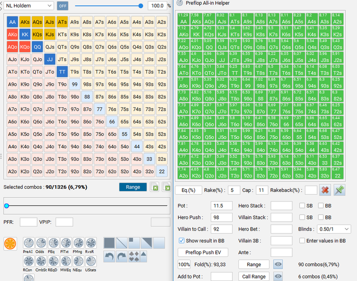Ночью посидел-потыкал префлоп аллын хелпер, взяв выборку из своей наигранной базы.