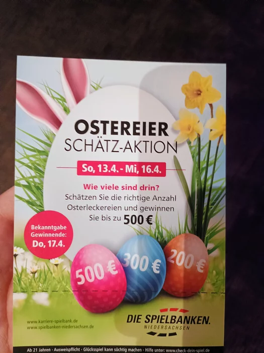 Каждый год перед Пасхой у нас в казино проводят акцию - нужно посчитать сколько зайчиков в коробке и если правильно угадал, то можешь выиграть 500, 300 или 200 евро.