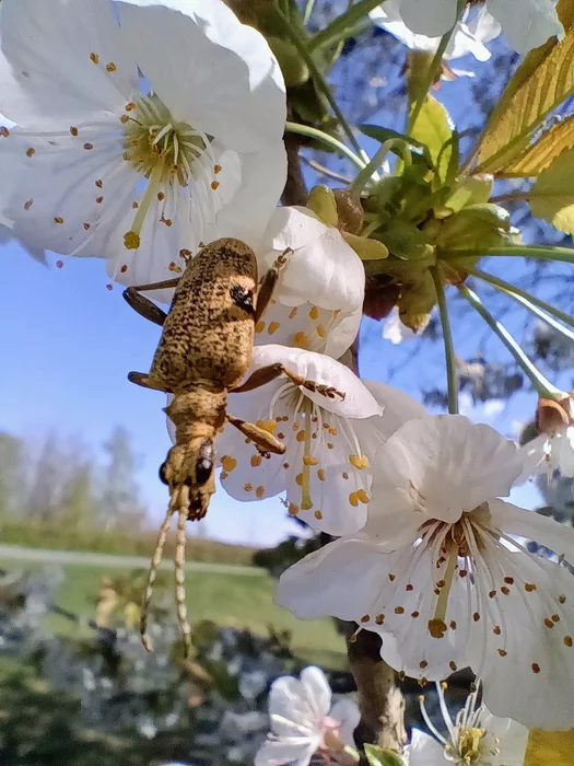 С виду страшный и грозный жук застыл на белоснежном цветке черешни, словно послушная модель перед объективом. Его крошечное тельце, блестящее на солнце, вписывается в тонкую гармонию лепестков и света. Кажется, что каждая деталь — от мерцающих крыльев до узора на спинке — тщательно продумана Великим Художником, сотворившим этот миг безмолвной красоты, Отцом и Создателем всего Видимого и Невидимого!