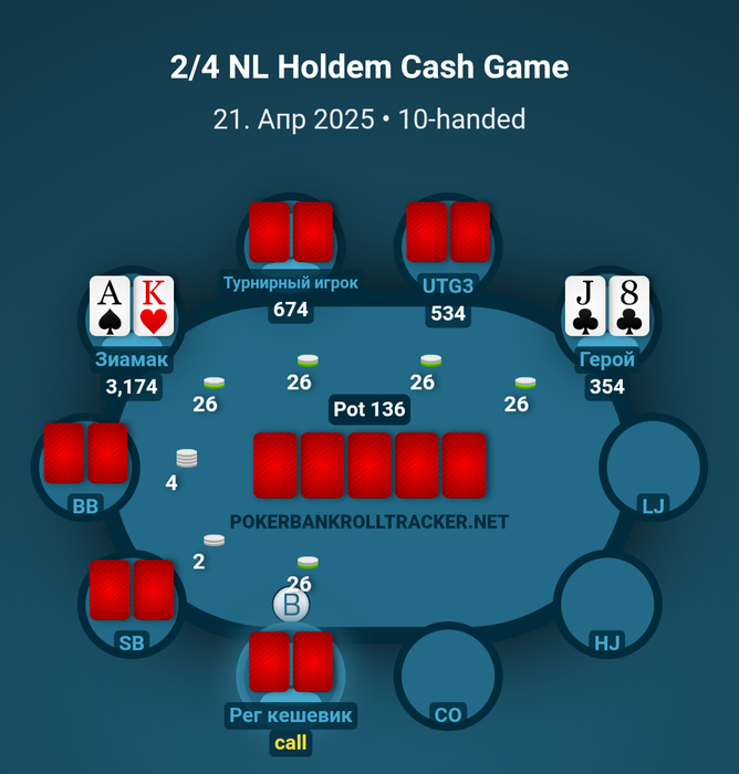 StaaL @ 25.04.25С J8s супер-странная раздача. Во-1 у нас фолд префлоп. Во-2, почему нет бета флопа?