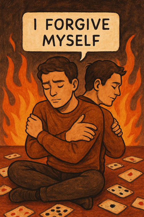 У меня не было терпения и выдержки никакой чтобы играть в турниры и не один раз, как черт меня дергнул, я делаю импульсивный блеф на ривере — ставлю всё, хотя у соперника очевидно сильная рука. Меня ловят и я вылетаю. Этот момент становится навязчивым: я постоянно прокручиваю ошибку в голове, виню себя, теряю уверенность, избегаю подобных ситуаций. Сколько часов просидеть в турнире и все коту под хвост! Через время я понимаею: ошибка была не в глупости, а в эмоциях и усталости. Я возвращаюст к раздаче, разбираю её объективно, учусь. Говорит себе: «Да, я ошибся. Но я человек. И я учусь». Я прощаю себя. Это не стирает боль, но отпускает вину. И только тогда я снова играю свободно, с ясной головой. Прощение в покере — это признание: ошибки неизбежны, и они не определяют твою ценность. Если мы не научимся себя прощать за ошибки - мы не будем давать себе шанс исправиться - огонь внутри нас будет сжигать нас! И это не тот огонь, который придает нам силы и от которого у нас горят глаза и мы играем в свой лучший покер.