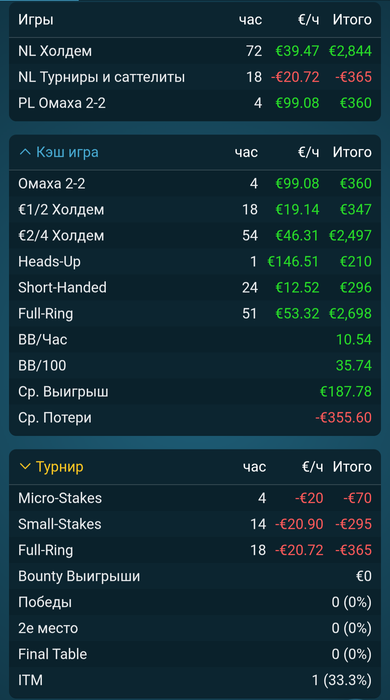 Пересадили меня за другой стол, где стеки были больше чем мой. Я обрадовался, что будет с кого нажиться и не переключая скорости, по привычке давил на газ! Это меня погубило - стол новый, 2 раздачи это сработало, но потом один бывалый немецкий морской волк поймал меня на блефе больше чем за половину моего стека. Я встал из-за стола и ушел, пока не дождался минкеша в турнире (что-то вроде ИТМ наверное) и потом просто пихал оллины (с логикой либо удвоится и пройти в день 2 на следующей неделе с хорошим стеком, либо вылететь и не ехать вообще в Розвадов на следующую неделю по причине отсутствия желания). В итоге я вылетел и не расстроился, поскольку мог спокойно уехать домой. После турнира немного поиграв кеш, отправился спать.