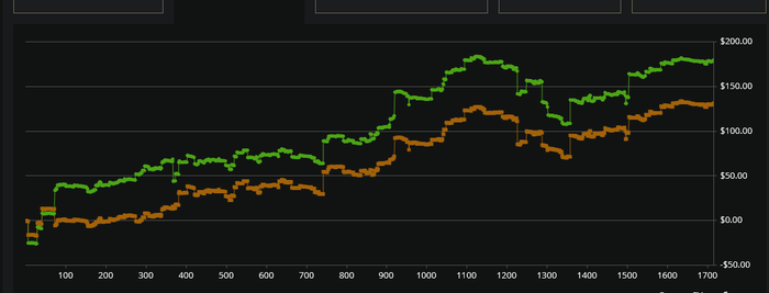 Старзы.Отыграл на них в самом начале тыщ 6 рук. Профит +103$ .Рб не помню скока было, один или два сундука по 3$, буду считать 1.