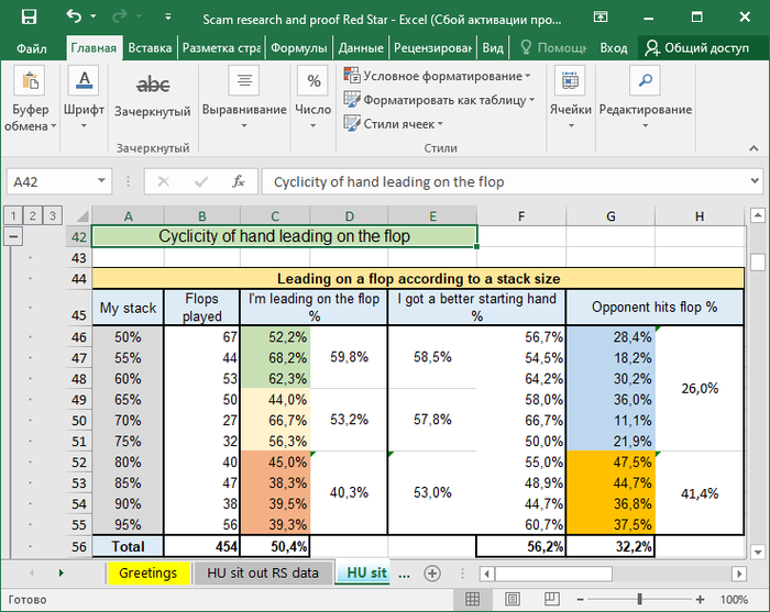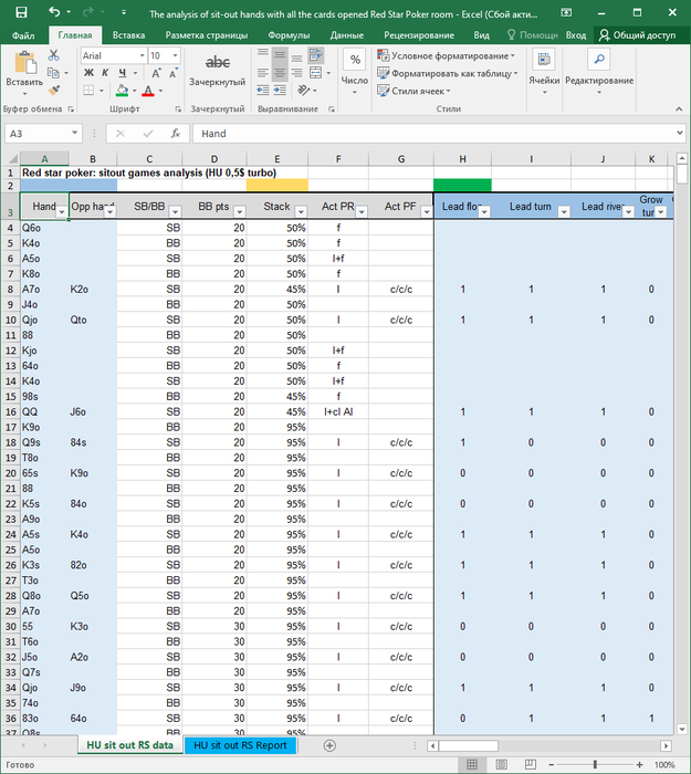 The analysis of sit-out hands with all the cards opened Red Star Poker room.xlsx (265.9 килобайт)Рассказываю как есть. Видимо, из-за того, что хедзап всего на 0,5 баксов, какие-то чуваки регились на хедзап и когда туда заходил я, они в этот момент шли куда-то. Может на работе кто-то отвлек, человек уходил обедать. Я не знаю, Жанглер. Я этим просто воспользовался, чтобы прочекать до ривера все их карты и увидеть, как софт сдает карты на флопе терне и ривере пока мы этого не видим, втихую )))