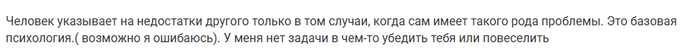 Далее все понеслось снежным комом в первую очередь от твоего неумения вести конструктивной диалог как взрослый и адекватный человек с читателями твоего же блога (ты же не для себя его тут ведешь), и усугубилось инфантильным образом мышления (искренние соболезнования твоим родным), которое ты транслируешь здесь на всю аудиторию и вряд ли я буду субъективным, если скажу что большинство людей такое раздражает.