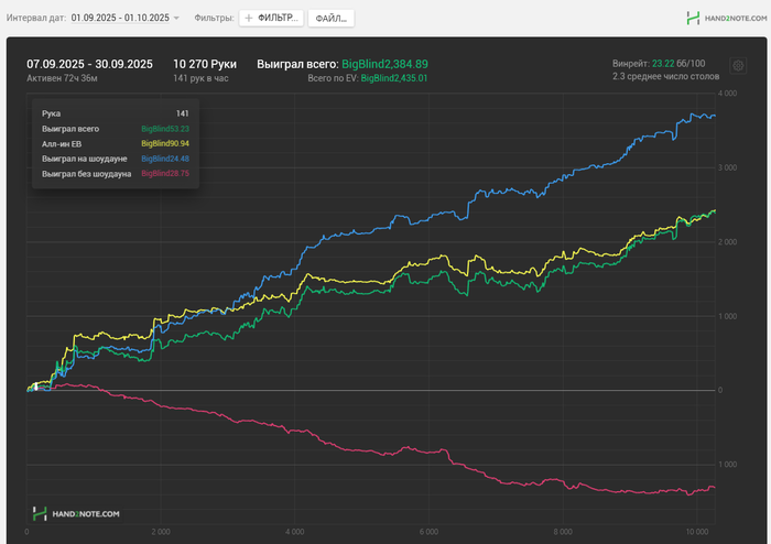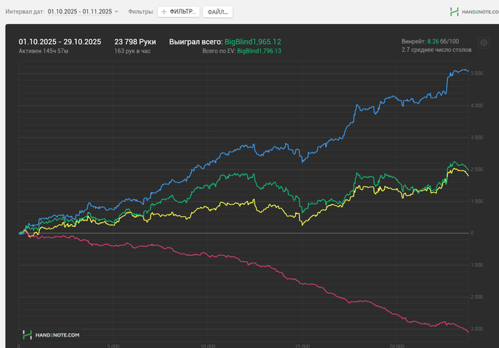 Karashtin_P, про цели ты все верно говоришь, до этого в среднем я играл по 200 турниров в месяц. Для меня была и до сих пор остается проблема накатывания дистанции. И вот уже второй месяц мне удается выполнить план по дистанции. Прогресс есть и я этим очень доволен. 😊