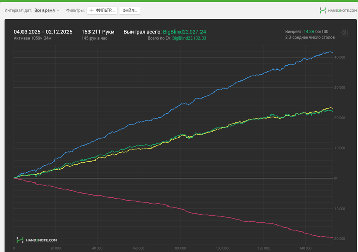 Karashtin_P, лоуафсные турниры на покер дом, это мой хлеб 😊 Рук которые трекаются вышло чуть меньше 17к. На покер доме фонд смотрит только на ROI. 🧐
