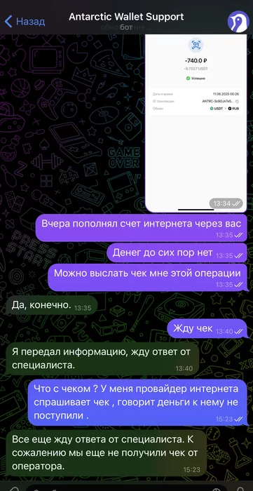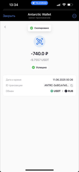 Начнем с комиссий за пополнение - очень странное решение для нового продукта брать деньги за пополнение . Но что еще хуже за вывод берут в сети ТРС-20 2,5 юсдт! Но это еще не самое плохое . Завел 10 юсдт решил попробовать перевести на карту . Дня два выдававало ошибку - на что поддержка сказала , что скоро починять . Итог через два дня совсем убрали вывод на карту . Ладно думаю опробую их основную функцию оплату через qr код . Пополняю себе домашний инет на 740 рублей и написано что успешно . А на счету денег нет . Проходит 12 часов пишу провайдеру - он говорит , что деньги не поступали .А поддержка этого сервиса говорит , что передала вопрос специалисту и тишина .