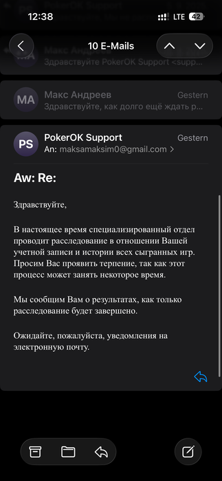 Очень рад, что покерок отдаст деньги. Честно, я думал что не отдадут. Потому что они своей работой СБ дискредитируют себя максимально и очевидно, что им пофиг на репутацию, по крайне мере в русском язычном комьюнити. Им хватает трафика, а это капля в море. Они от этого ни экономически ни репутационно не страдают.