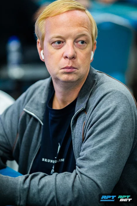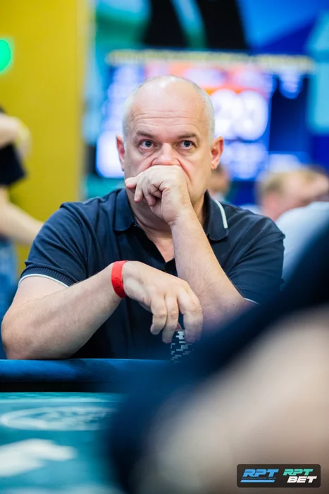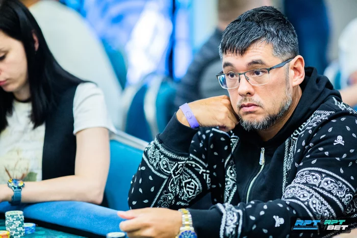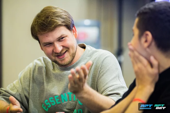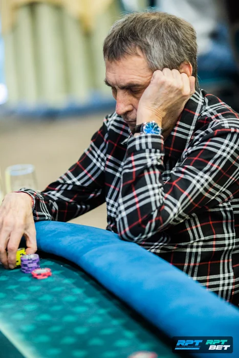 Зашел с первой рейзом, Ян Лапинский следом уравнял. На большом блайнде посквизил Александр Максимов. Остались втроем.