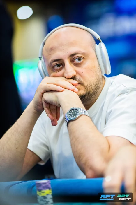 Из середины открылся Меир Батырханов, его подколлил Армен Амбарцумян. Лиор Фарибай с кнопки посквизил 25к, Меир — колл 25к, Армен — пуш 32к.