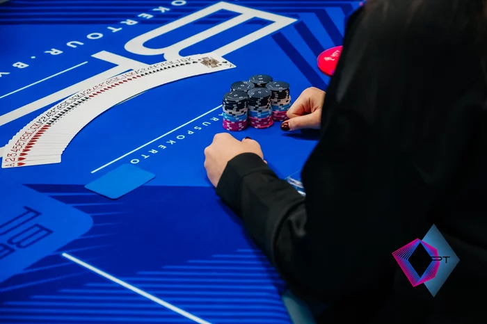 За соседним столом вылетел Роман Васин. Его фишки ушли в бокс Данилы Умрихина. Умрихин с наловил туза и обыграл пару .