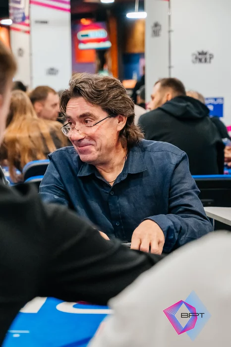 Алексей Прагер удвоился до стека 10бб против Сергея Соловьева.