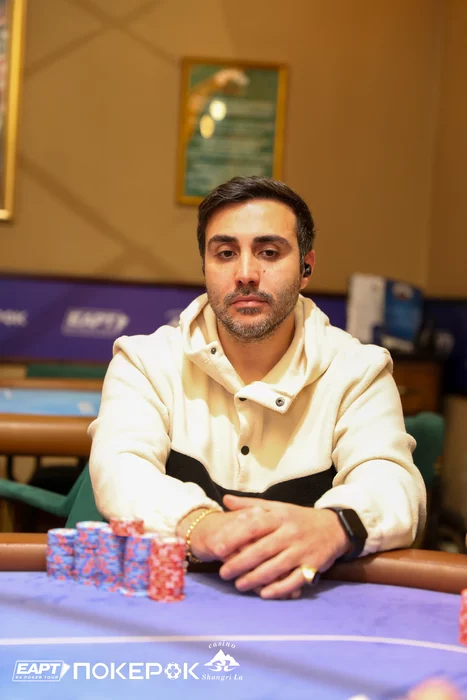 Эталонный ICM-суицид случился на баббле последнего флайта Main Event. За столом есть стеки: 80,000, 83,000, 96,000, 128,000, 144,000 фишек. Khachik Gabrielov (230,000) открылся 40,000 из UTG+1, чиплидер Sargis Avdalyan (650,000) подбил на катоффе.
