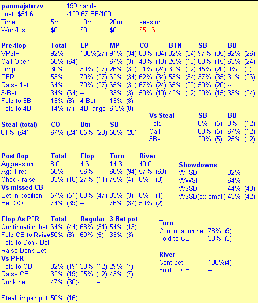 статы сами собой стали 20/17/7 в среднем, на каких-то столах 25/23, на каких-то 15/12 бывает... ))) статы просто взяли и резко стали такими...яхз почему, но я рад и комфортно себя чувствую )))))) если статы нитовые, хер кто что оплачивает :/// встревать в сложные раздачи получается редко, а стилить получается часто