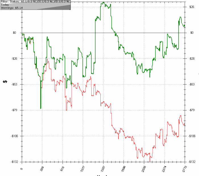 короче оказалось у меня 30 потенциальных баинов нл20 и решил я начать гриндить нл20... вспомнил, что на нл10 перешл вообще с 18БИ и нормально закрепился к тому же частенько включал нл20 и понял, что ничем не отличается он как ни крути, но в тоже время ответственность как-то побольше чувствуется, чем на нл10...короче, надоел мне просто нл10..а если нет разницы, то зачем платить больше (рейка)?!? )))) ну, пока иду в небольшой плюс, но самое интересное приключилось сегодня: Выиграл свой самый большой пока банк сидел за столом с типом: