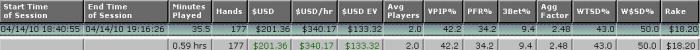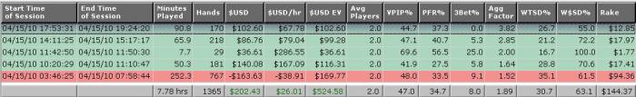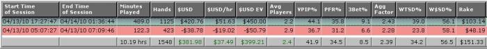 Сегодня играл в основном днем, так как вечером решил попробовать кеш-оффлайн. Опять первая играбельная рука в оффе была моя любимая - KQ. Надо ли говорить, что я словил фулл... Вообще, чувства противоречивые - 4 часа я скидывал карты, тупо не шло, дважды удвоился когда добавлял с СБ. В итоге ровно +200$ - пойдет в зачет марафона.