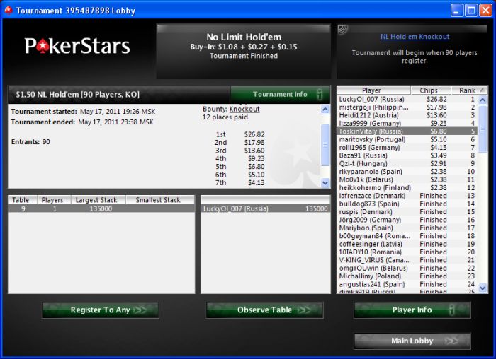 В целом, конечно, доволен. Отыграл турниров 15,+48 где-то(неплохой ROI такой