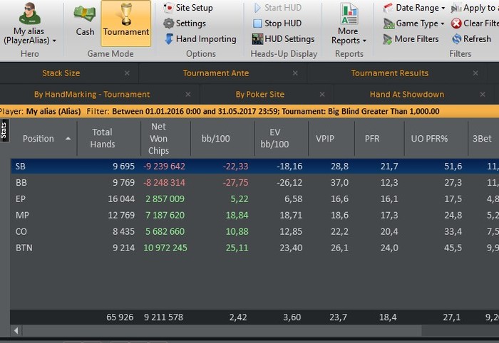 spectr1987 @ 4.4.2017 Здравствуйте.. Играю в покер 7 лет. Профессионально 2 года. Ник- spectr1987 PS; spectrAA - 888; MaximUkraine - Party Румы: ПС - основной, 888- второй. Основная дисциплина мтт(9 макс не турбо), хотя могу играть все. Просто турбины и гиперы слишком дисперсионны, для моего бр. также ранее играл мтт омаху хай-лоу всех жанров и направлений. Дистанция около 10к турниров(чуть меньше) отыграна в плюс. Откаты и все условия готов обсуждать. Статистика открыта. Использую ХМ2, также работал во флопзилле.