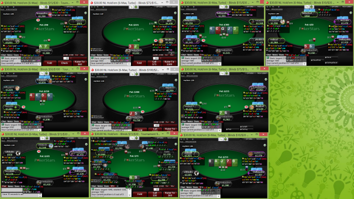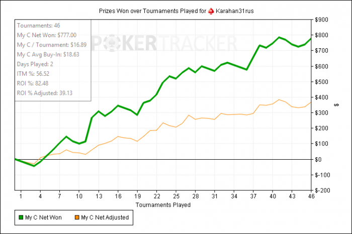 такой раздаче, сперва в этом турнире сидел дикий фиш, у которого я всё пытался забрать стек, который он постоянно наращивал, а потом начались зарубы с регами, стек постоянно прыгал туда-обратно..