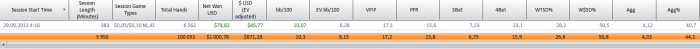 Будем еще болеть;) Не расстраивайся, значит еще не пришло твое время. А я тем временем занес пари. 100к рук с винрейтом более 10. Последние 15к рук были ужасными в плане попадания оппами в борды, зайти на треть стека и попасть в сет только так) Но благо, что сделал запас до этого+временами переезжал их, поэтому евББ 9,14 всего. Играл в 24 стола, поэтому думаю, что можно еще выше иметь винрейт. Теперь попробуем побить нл25, но не сильно усердствуя. П.С. я думаю, что из-за ошибок оппов префлоп можно не смотреть евББ, а только фактический. Или я не прав?