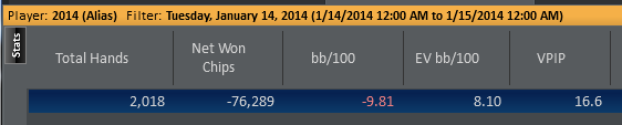 SB Player9 (30,041) 30bb VPIP: 38, PFR: 27, 3B: 24, AF: 7.0, Hands: 88
