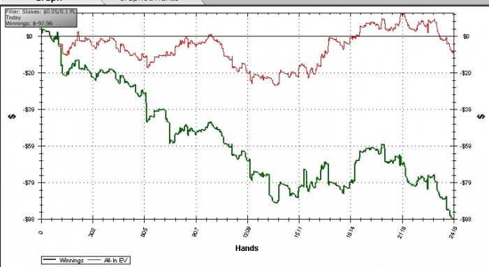 Чекать с такой рукой, ну это за гранью. Сделали рейз, а дальше смотрим, против одного уж точно можно выставиться. Можно сделать рейз полбанка.