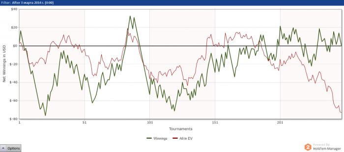 может и непруха в том числе, но по шарку ты минусовый за 3к турниров с аби 3$... я бы всё-таки поработал над игрой, пересмотрел какие-то моменты, поразбирал раздачи на твоем месте) вод кокеты с мизой можешь глянуть для начала, если не смотрел)