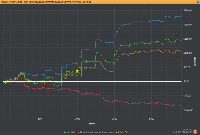 Интересные мысли по раздаче с десятками. Тоже после просмотра какого вода(кажется корсика) стал колить 4беты с подобными руками аргументируя тем что против диапазона кола 5бета десятки будут позади, а фолдить слабо. В итоге пошел залив и по красной и по синей, много где вскрывал неуместно, много где колил одну-две ставки и потом фолдил. Еще и тильтовал нередко после неудачных колов не зная правильно сделал или нет. В итоге пришел к выводу что ев кола 4бета(при условии околоидеальной игры постфлоп) не сильно выше ев пуша, при условии что человек будет иногда фолдить на 5бет. Зато запихнуть намного проще и подозреваю менее дисперсионно. Про постфлоп этой раздачи промолчу думаю тс еще не втянулся в катушку после перерыва