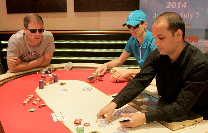 Кажется, после первой волны активных действий игроки приступили к маневренной стадии. Да и зрители, сперва плотным кругом стоявшие вокруг столов, постепенно рассосались. Одни пошли играть в сателлите к Deep Stack по €100, остальные отправились на рулетку или море...