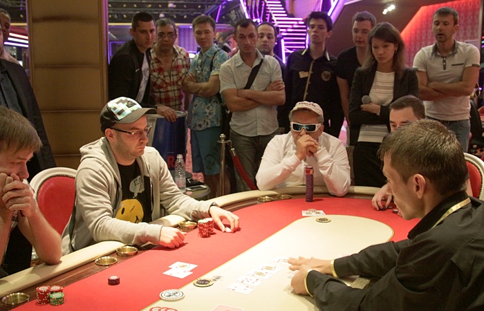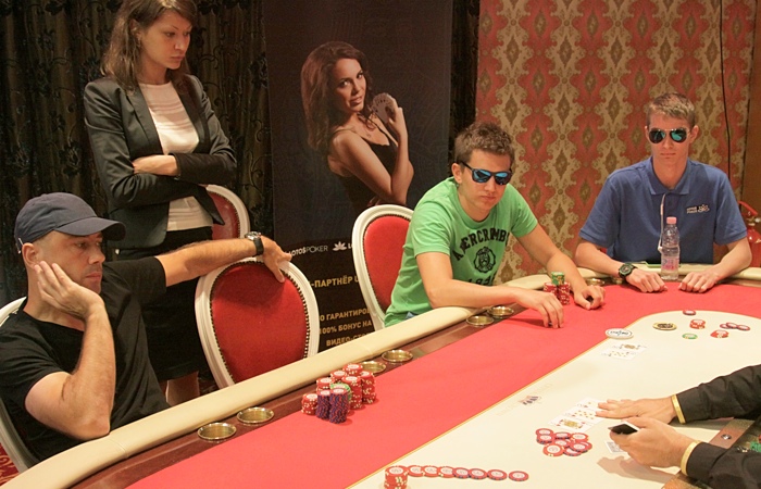 В первой же раздаче вылетел Дмитрий Похабов, который по его словам "сделал все, что мог". Карты у него не было совершенно, когда же он показал свои , а Шарон Беллиш - , он спокойно сложил руки, по опыту зная, что A-K сегодня не проигрывает.