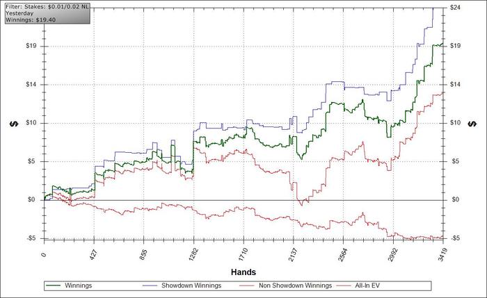 Понял отчасти причину своего тильта, и кроется она оказывается в том что я не очень сука люблю людей)) Глядя на график это понял)) ни старзы я в этом обвиняю (все таки по моему грешить на гсч уже пиздец как не модно) а люди... это ж ебануться) Дак к причине... я весь из себя такой важный, пытаюсь играть в плюс, хочу идти по лимитам вверх, зарабатывать норм деньгу, становиться все скиловее и скиловее, играть ёбаную кучу столов с положительным бб на сто, комбинировать статы и логику, со временем все точнее ложить оппа на диапозон а то и на конкретную руку... и тут ТАДАААА против меня играет еблан которому НАХУЙ все это не нада! ОН просто пихает эни ту, он просто думает что ему доедет флашдро, вернее он просто не о чем не думает, и когда мои деньги которые нужны мне для подъема по лимитам уплывают к нему я просто в бешенстве! Нужно до конца просто осознать что те же тузы в префлоп аллыне имеют не 100% еквити, ситуация когда кто то вообще без аутов такая редкая что пиздец, и постоянно есть шанс что ситуация развернется в обратную сторону, с точки зрения теории я это осознал давно, а вот подсознание все ровно говорит мне, "Да эти ебланы не одной книги не прочитавшие должны только проигрывать! Без вариантов!" А когда это не происходит возникает... депрессия)
