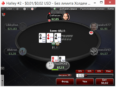 Poker Stars $0.01/$0.02 No Limit Hold'em - 6 players -