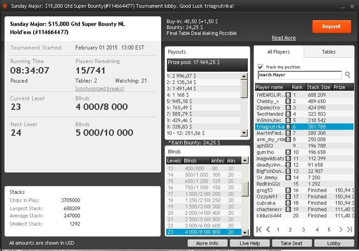 Pacific, $60 Buy-in (700/1,400 blinds, 175 ante) No Limit Hold'em Tournament, 9 Players