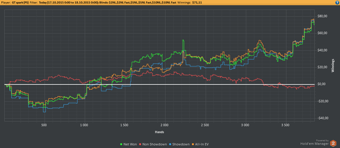 $13.79 2)сыграл против оппа который 80% падает на 4бет,и много 3бетит