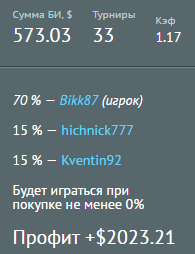 Еще кстати Bikk87 выстрелил в Big33$ и мне немножко перепало