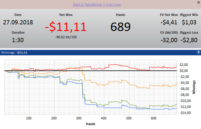 Как обычно много грязи по ев в 2 раза недобор фишек. Но это не кеш. Сыграл 20 турниров в один момент играл 16 туриков одовременно.