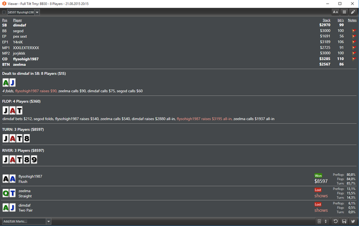 В общем, начинаю все заново. Отбрасываю нотки тильта (но не обещаю, что не буду ныть насчет перездов в дневнике ). Поищу норм лэйауты, чтобы столы всех румов выглядели одинаково и пометки игроков были хоть примерно похожи. Буду искать черный фон. Нашел с серым - было поначалу прикольно, потом метки игроков съехали, на 888 отключились, на айпокере тоже перестали работать. Посоветуете что-нибудь дельное, проверенное - буду рад :)