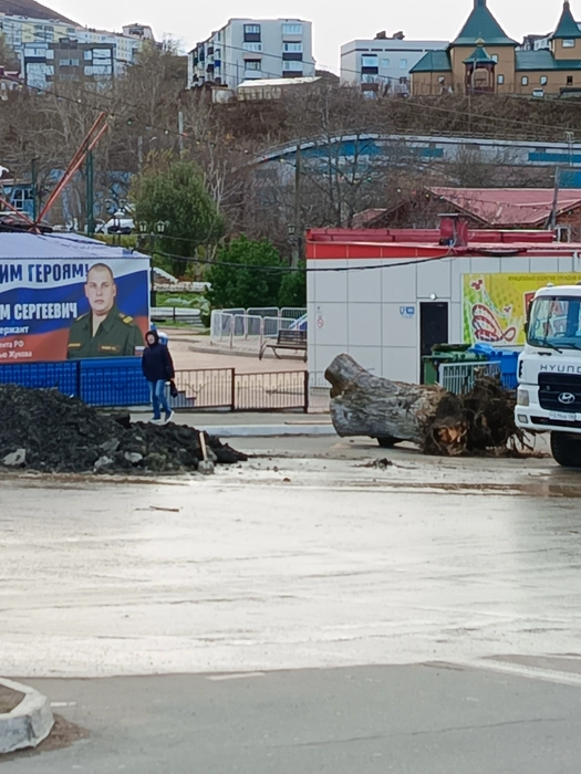 Первой новостью сегодня , когда я приехал утром в Холмск, была новость от таксиста: наш дуб завалился сегодня , и прямо на чью-то машину..