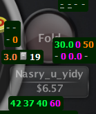 UTG: 284.2 BB (VPIP: 53.53, PFR: 5.38, 3Bet Preflop: 1.01, Hands: 419)