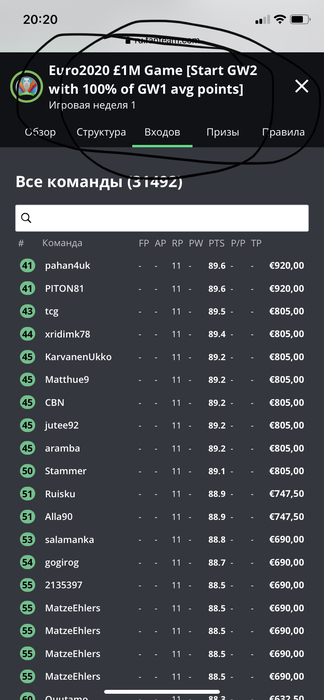 Вкладка поддержка>фентези футбол> евро 2020