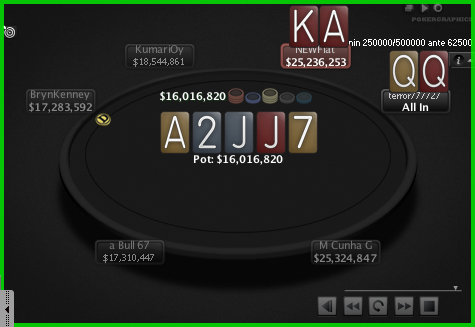 Msemin, это позиция человека, который играет всегда на топ-1. Эта твоя позиция давно всем знакома, ещё по ТВ-трансляциям. Но в случае аккуратной игры можно было занять как минимум 3 место, в два раза больше денег.