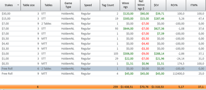 Напротив каждого турнира стоят оба значения + еще отдельно net win, т.е. чистый профит без байина