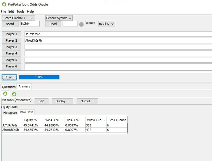 Joke703, Юра, я оценил не ренджи префлопа, а эквити руки на конкретном флопе против диапазона 3бета в вариантах 5% 10% и 20%. И увидел что эквити практически не меняется 35-38.