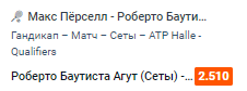 Два дроча и не совсем понятно, что Персеел можно предъявить Баутисте в защите его прошлогоднего полуфинала. Если против раончи, там было кислое хлебало канадца, тут другой расслад, Баутитста будет вамосить при удобном моменте. ведь затяжные розыгрыши будут среди двух дрочей. крч тут все просто, баутиста закрывает в 2х