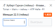Наверное первая в жизни ставка на ТМ на траве)..какой-то дикий тотал нарисовали в пинке. я бы тут даже овербетнул в старые времена)