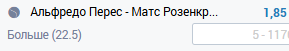 Нори классом выше, набрал походу турнира. Бонзи без титула, дрогнет. Вообще мне нравится бонзи, как теннисист, но он тонкой душевной организации и часто плывет. Вчера не мог собраться против калеки Микельсена. Тут очевидный валуй на Нори очевидный, на мой взгляд не более 1.6 должно быть. Также смотрел матч Бонзи против фина, финал челледжера, и зрители совершенно не играют ему на пользу.