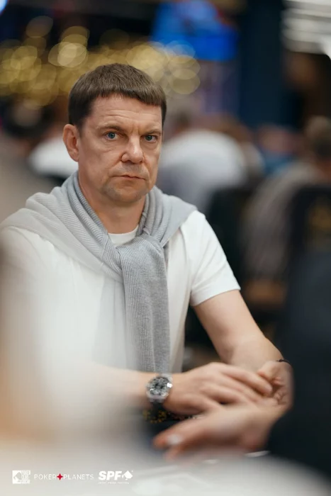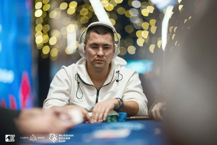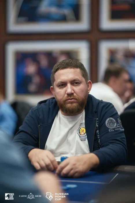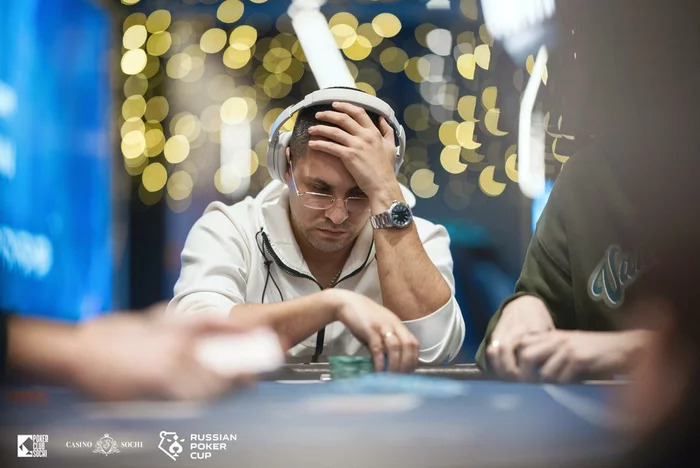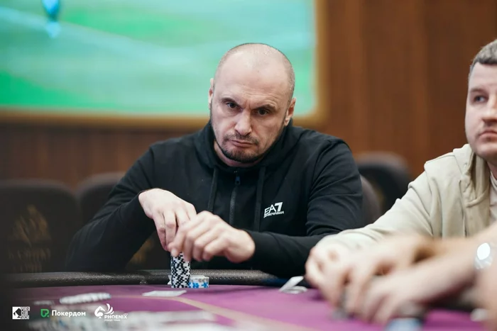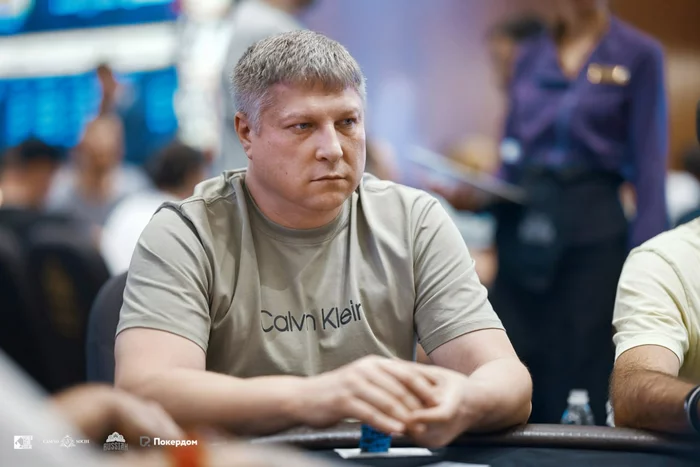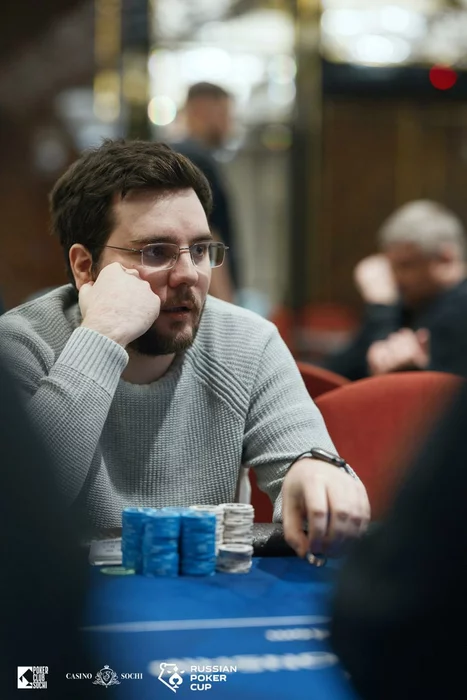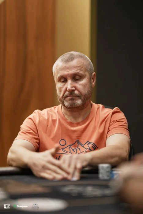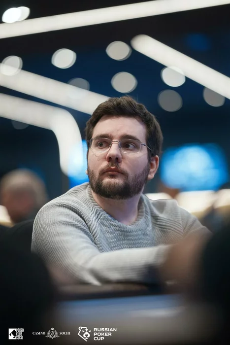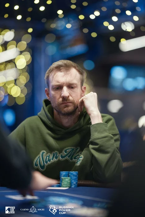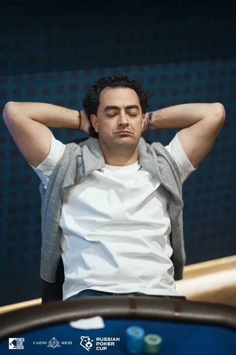Саркис Карабаджакян проиграл монетку, и в следующей раздаче его выбил Данила Матвейчук: > . Доска: .