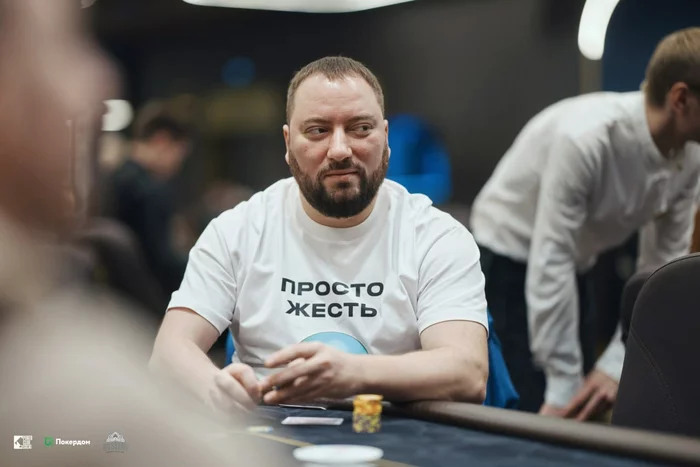 Стол 19. Алексей Федоров (210,000) запушил блайнд на блайнд, Ян Богомолов (600,000) уравнял с .