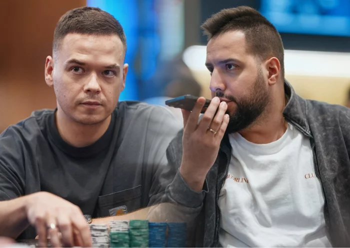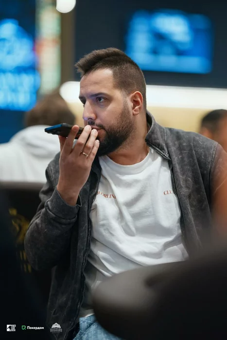 За соседними столами всех фишек лишились Никита Мкртичян (875 у.е.) и Эдуард Хайдаров (975 у.е.). Редро на два стола и пауза на розыгрыш.